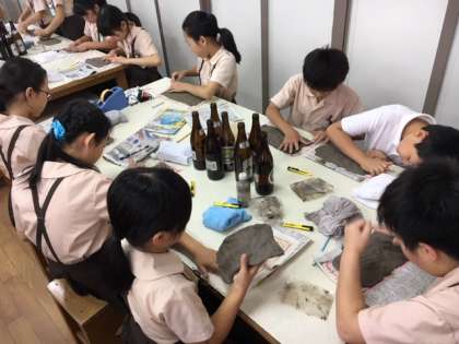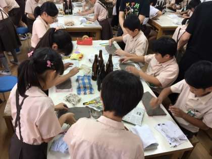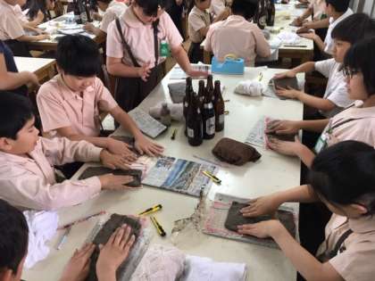 粘土伸ばし、ビールびんを使った成型等を行い一人につき2個のカップを作りました。