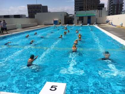 これは、4年生以上で水泳の苦手な児童を対象に3日間の日程で行われましたが、これまであまり泳げなったのに、みるみる上達して25mやそれ以上泳げるようになった人もたくさん出てきました。とても自信がついたことでしょう。今後、授業で行われる水泳でもっと力を伸ばしてほしいものです。
