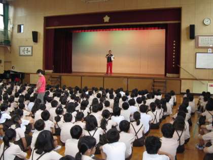 その後、今学期いっぱいでご退職される先生とのお別れを行い、夏休み中の過ごし方や夏季プール指導についての諸注意を聞きました。