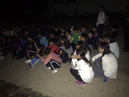 怖いお話しのあと、森の中を班ごとにまわりました。怖くて行けない人も少しいました。