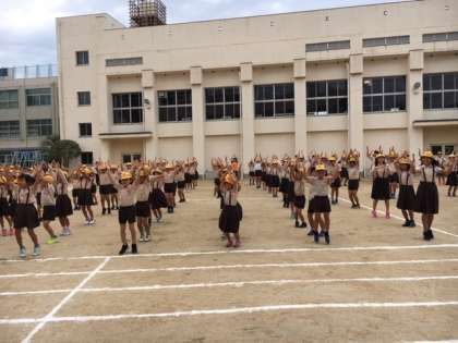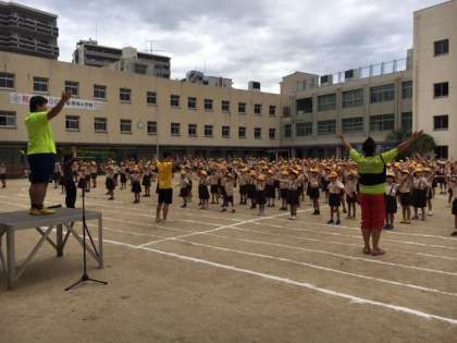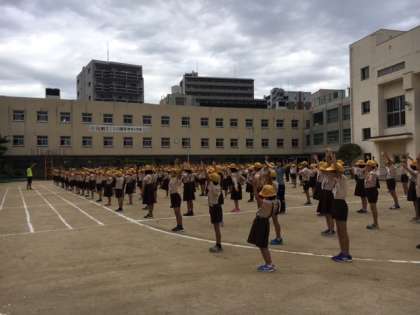 学校長の話、児童の表彰の後、運動会に向けて「ラジオ体操」と「EX体操」をしました。