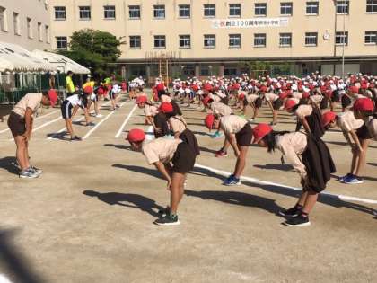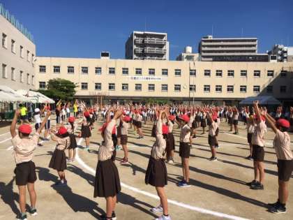 「ラジオ体操」に始まり、「EX体操」「おわりの体操」を全校児童で行いました。