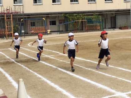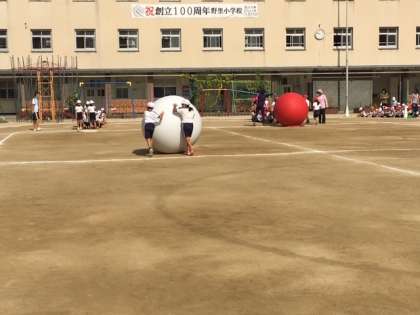 同じく2年生の大玉ころがし・徒競走のようすです。