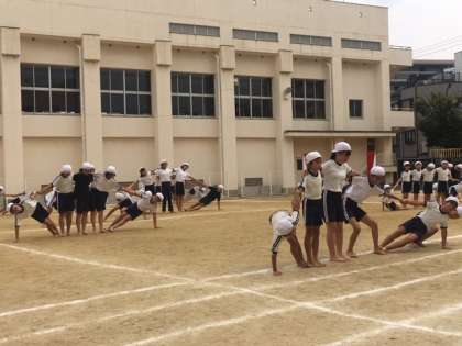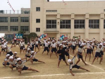 5・6年生は3・4時間目、リレー・徒競走の入退場や南中ソーランの細かな動きの練習等を行いました。