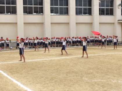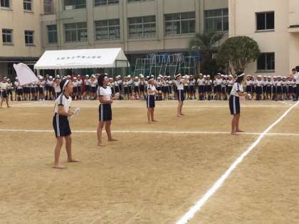 応援合戦(後半)、全児童による「大玉おくり」の練習等を行いました。