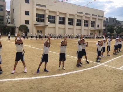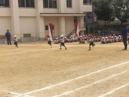 1・2年生は、1時間目途中から2時間目にかけて、ダンスや各学年競技・徒競走等の練習を行いました。