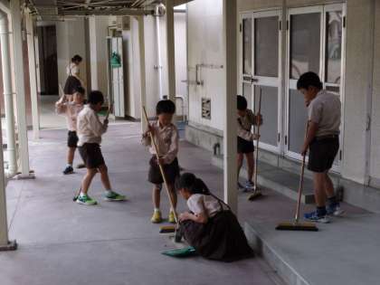 10月15日(火)より一週間、今年度二回目のたてわり班清掃を行います。今回は、前回の時と清掃場所をかえて実施します。高学年の子どもたちは、集会等でのたてわり班活動の経験も生かしながら、優しく下級生に接して清掃の仕方などを教えていました。また、低学年の子どもたちも上級生のお兄さん、お姉さんに教わりながら一生懸命に取り組んでいました。