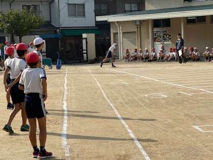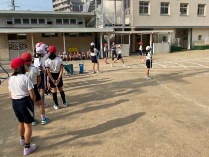 本日は、スポーツテストです。ソフトボール投げをしました。
