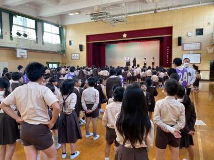 「この絵はなんでしょう?」というゲームを行いました。ドラえもん等の絵を見せてそれが何かを当てるゲームです。全部の班が全問正解していました。