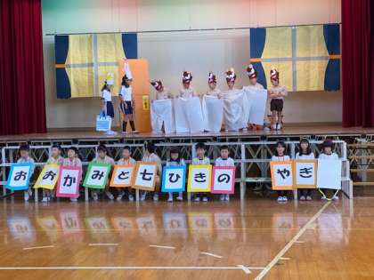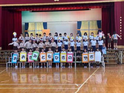 2年生は、講堂で「総合学習発表会」に向けての練習をしました。