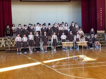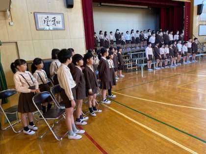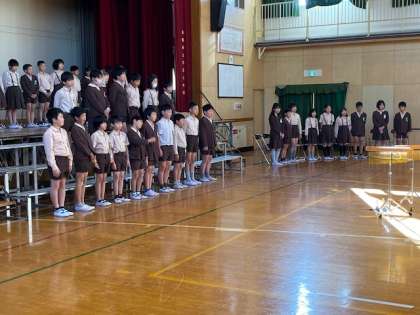 5年生は、講堂で「総合学習発表会」に向けての練習を行いました。