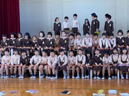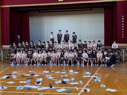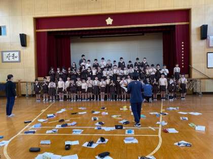 本日1・2時間目、3年生は講堂で「総合学習発表会」に向けて練習を行いました。