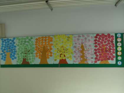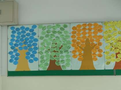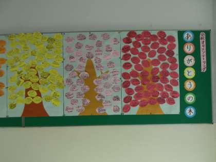 10月に行われた全校オリエンテーリングの振り返りとして、全学年で「ありがとうの木」の制作に取り組みました。