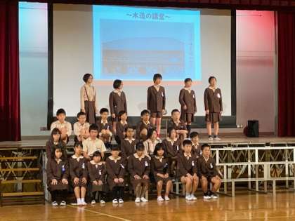 6年生は、3・4時間目講堂で、「総合学習発表会」に向けての練習を行いました。