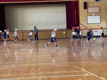 内野の人は、常に2つのボールを意識しながら逃げ回るので大変です。とても活発に取り組んでいました。