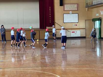 本日1時間目、4年1組は体育の授業で、同時にドッジボールボール2個で行うドッジボールを行いました。