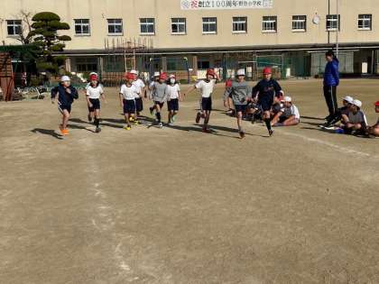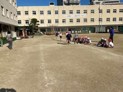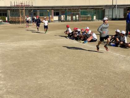 5分間でトラックを何周できるか、個人内の闘いです。最高11週した女子児童もいました。