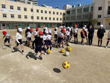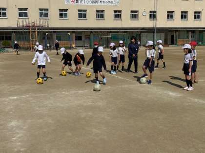 サッカーは、本日が初めてなので、ボールを足で扱うのが難しいようでした。