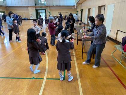 お手玉、おはじき、けん玉、まりつき、コマ回し、ゴム飛び、あやとり等の遊びを班で順番に回りながら体験しました。とても楽しかったようです。