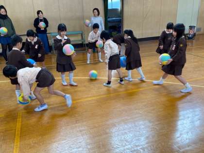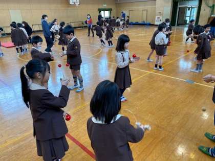 本日2時間目、地域の老人会の方や保護者の方にお手伝いいただき、昔遊びをしました。