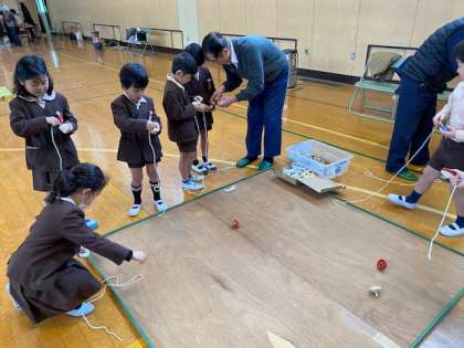同じく、上からコマ回し、ゴム飛び、あやとり のようすです。