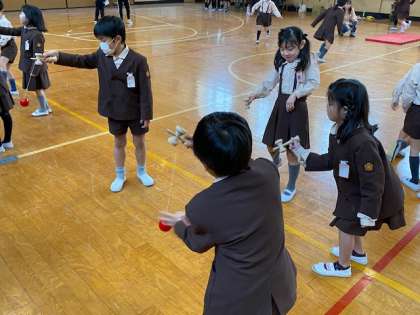 3時間目は、2年生が昔遊びをしました。
