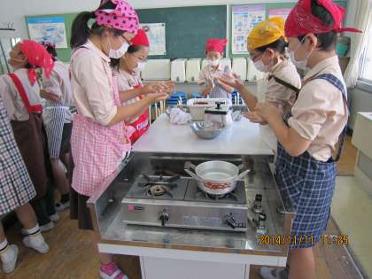 5年生は、家庭科で「家族とほっとタイム」の学習をしています。