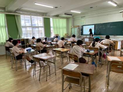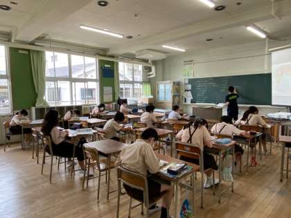 写真は、5年生1・2組の前半グループの授業のようすです。