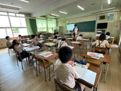 学校再開3日目です。今日も静かに授業が行われています。教員用のフェイスシールドも届き、使用しています。