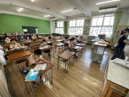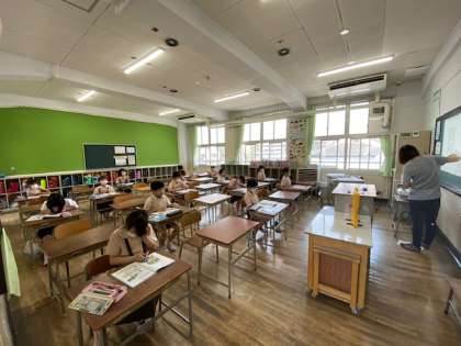 2年生1・2組前半グループの授業のようすです。時計の学習をしています。