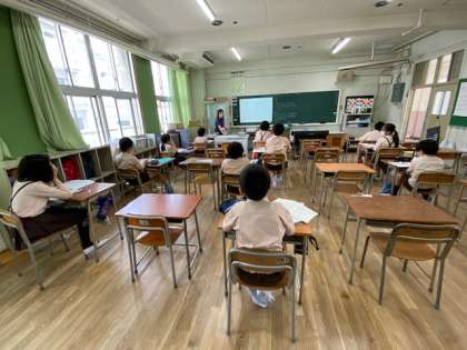 5年生1・2組前半グループの授業のようすです。算数の学習をしています。