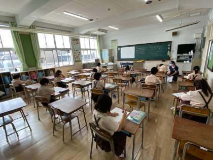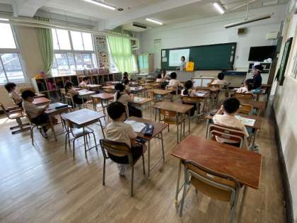 2年生1・2組後半グループの授業のようすです。午前と同じく時計の学習をしています。