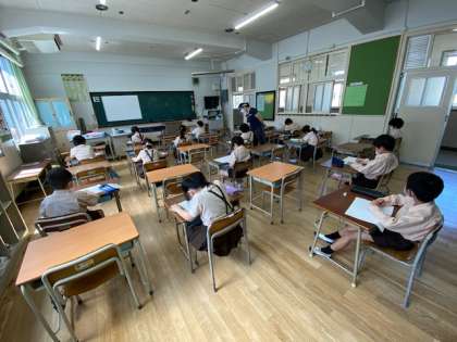 2年生1・2組後半グループの授業のようすです。国語のプリント学習です。