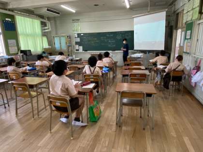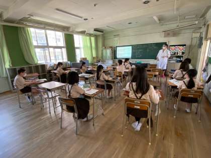 5年生1・2組前半グループの授業のようすです。理科と算数の授業です。