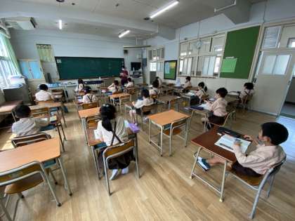 2年生1・2組後半グループの授業のようすです。国語の授業です。タンポポの花をとり上げています。