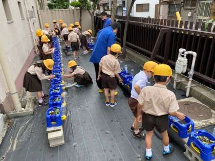 1年生1・2組の授業のようすです。生活科の水やりと算数の授業の様子です。