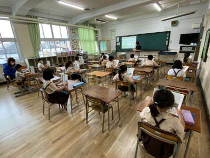 2年生1・2組後半グループ1時間目の授業のようすです。国語の授業です。