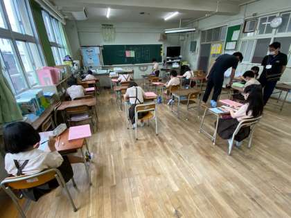 3年生1・2組後半グループ1時間目の授業のようすです。総合の授業です。