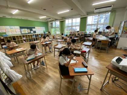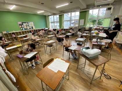 3年生1・2組前半グループ2時間目の授業のようすです。算数の授業です。