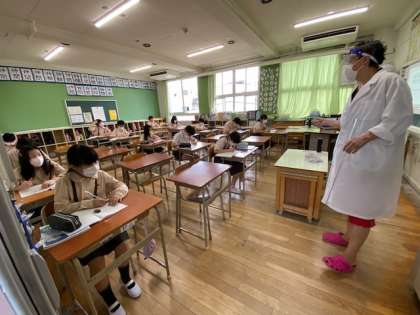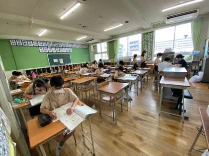 6年生1・2組後半グループ2時間目の授業のようすです。算数と理科の授業です。