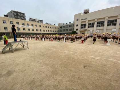 学校長からの話の後、児童看護の先生と避難訓練の係の先生から話がありました。