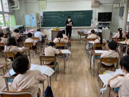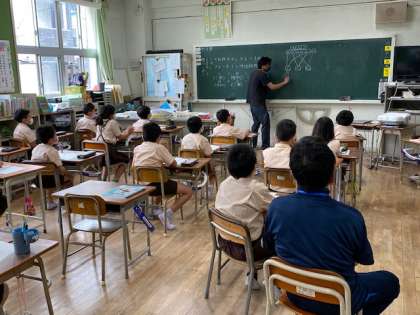 3年生1・2組の授業のようすです。どちらも算数で割り算の学習です。