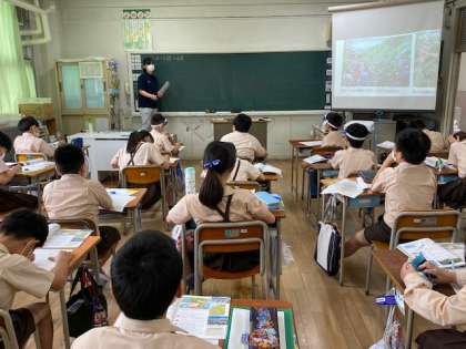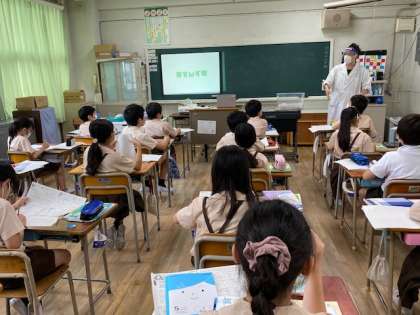 5年生1・2組の授業のようすです。1組は理科、2組は社会です。