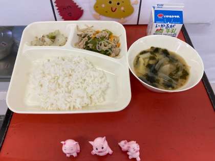 ※給食室の中学年用見本です。豚さんのフィギュアが可愛いですね!