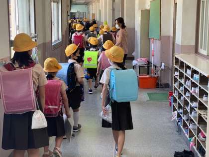 各教室での話し合いが終わってから、地域でかたまって集団下校をしました。