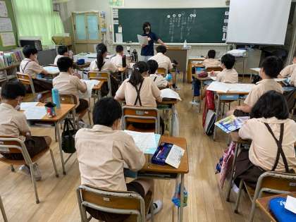 5年生1・2組の授業のようすです。どちらも社会の授業です。