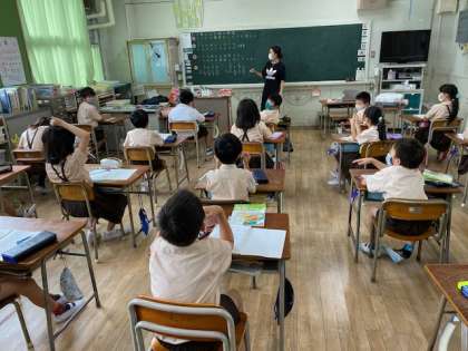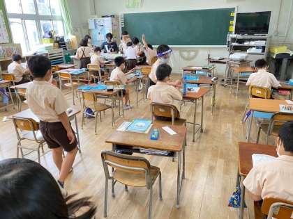 3年生1・2組の授業のようすです。1組は学活、2組は算数の授業です。