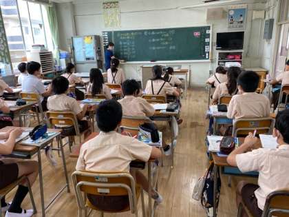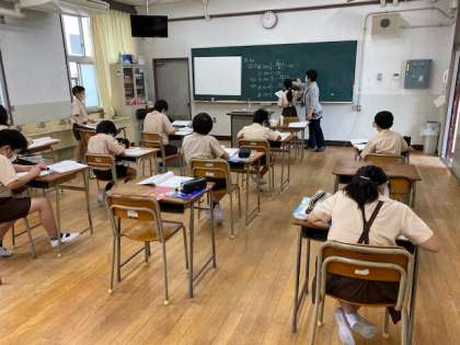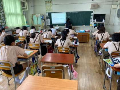6年生1・2組の授業のようすです。2クラスを3つに分けて、1組・2組の教室と図工室で、算数の習熟度別授業を行っています。