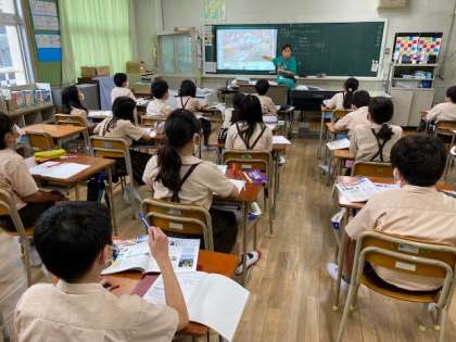 5年生1・2組の授業のようすです。どちらも社会の授業です。北国の生活等を学習しています。