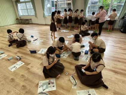 「科学クラブ」は、磁石で砂鉄をとるための道具を作っています。